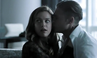 Brunette princess Rebecca pulverizes horny man in bed room