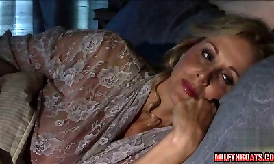 Seductive young stepmother Tia Cyrus demonstrates the wonders of a great blowjob to her stepson